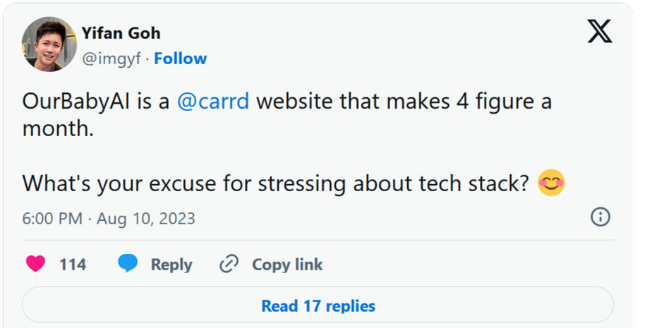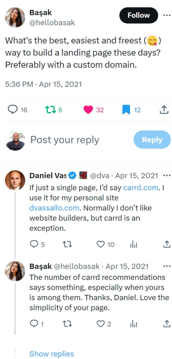 Hey, It's OliverI'm a senior software developer who picked carrd.co website designs and copywriting as a hobby back in 2021.I quickly mastered these skills and have built a 6-figure side income from designing over 200 carrd webisites for both local and foreign clients.By emphasizing clean and simple design with punchy copywriting, I've helped a lot of businesses and startups scale up their online presence and sales using carrd.co.All at very manageable costs yet with massive results.I've selected some of my best performing designs as templates to get your online campaigns up and running in no time.