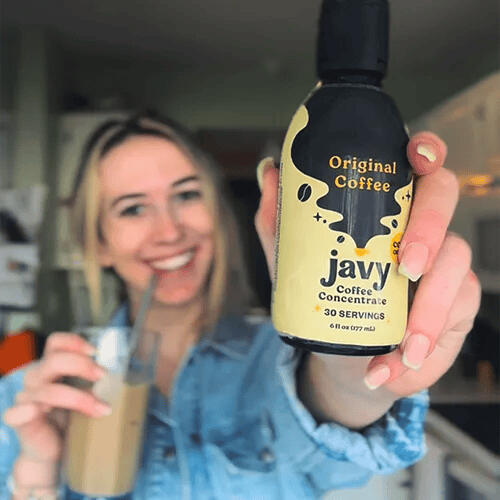 1. You can take back your timeMeet the most convenient coffee ever invented. Say goodbye to long lines at the coffee shop and daunting brew times at home. Javy is a cold brew concentrated liquid, so you can simply add it to cold water or milk for an instant and delicious iced coffee. It's so simple that you can make it anytime, anywhere with no hassle or mess. Just Imagine never having to pour hot coffee over ice again!
